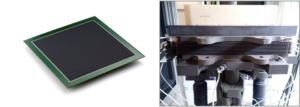 Figure 1 : Photographies d’une cellule CELCER-Gen 1 de dimensions 16 x 16 cm² (surface active par cellule : 200cm²) (à gauche) et du stack intégrant douze de ces cellules (à droite).