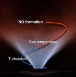 Des expériences réalisées dans des flammes d’hydrogène montrent que l’ajout de vapeur d’eau dans la flamme diminue les émissions de NOx.