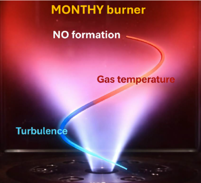 Le projet MONTHY s’est fixé pour objectif de développer et valider des modèles de combustion turbulente pour prédire la formation des oxydes d’azote lors de la combustion de H2 dans des chambres de combustion industrielles. Le projet s’appuie sur une double approche : une base de données de champs de concentration d’espèces est obtenue par diagnostics spectroscopiques dans des flammes laminaires (pour valider la cinétique) et dans des flammes turbulentes. La base de données est obtenue à partir de diagnostics de spectroscopie laser, dédiés à la mesure quantitative in-situ d’un grand nombre d’espèces chimiques impliquées dans la combustion de l’hydrogène.